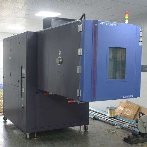 三綜合試驗箱,又稱三綜合環(huán)境試驗箱、溫濕振三綜合試驗箱、振動三綜合試驗臺、溫度/濕度/振動綜合應力試驗系統(tǒng),可將溫度、濕度氣候應力試驗與振動力學應力試驗集成一體。綜合環(huán)境試驗系統(tǒng)工作時,將溫度(高溫或低溫、溫度變化)應力、濕度應力、振動應力以及電應力按規(guī)定的組合方式和周期性空間同時或分別施加到試驗樣品上。
